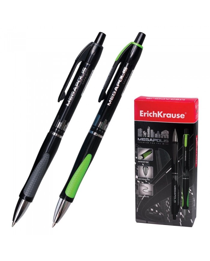 Ручка шариковая автоматическая ERICH KRAUSE "Megapolis Concept", ЧЕРНАЯ, корпус черный, узел 0,7 мм,
