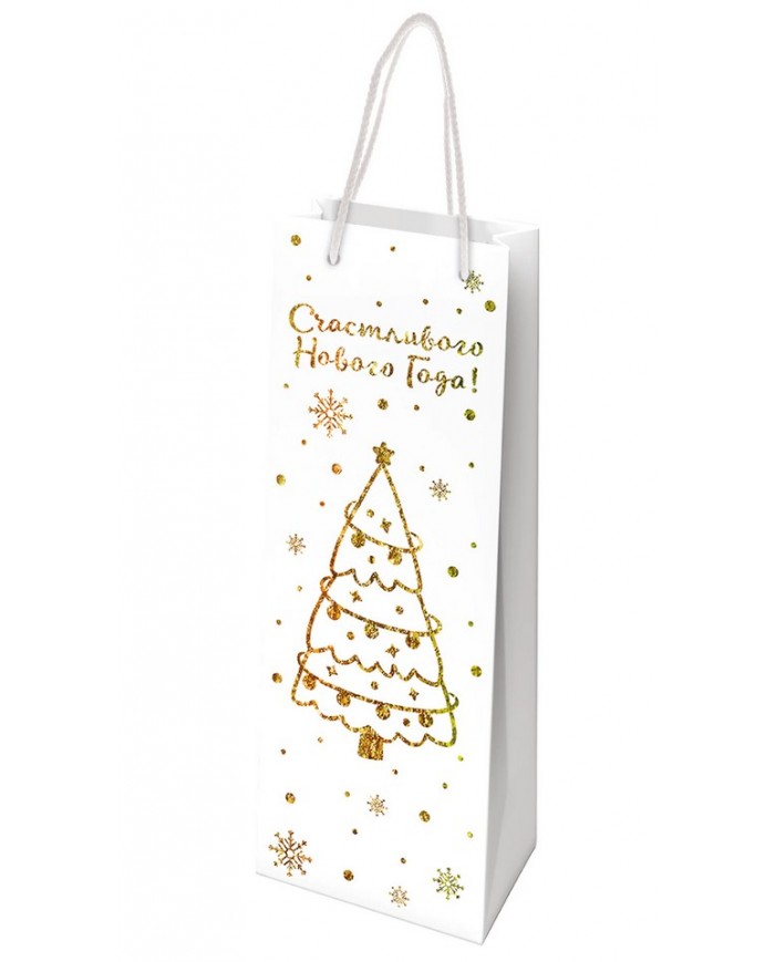 Пакет подарочный, новогодний, 13x9x36 см, "Bottle #2", голография, ЗОЛОТАЯ СКАЗКА