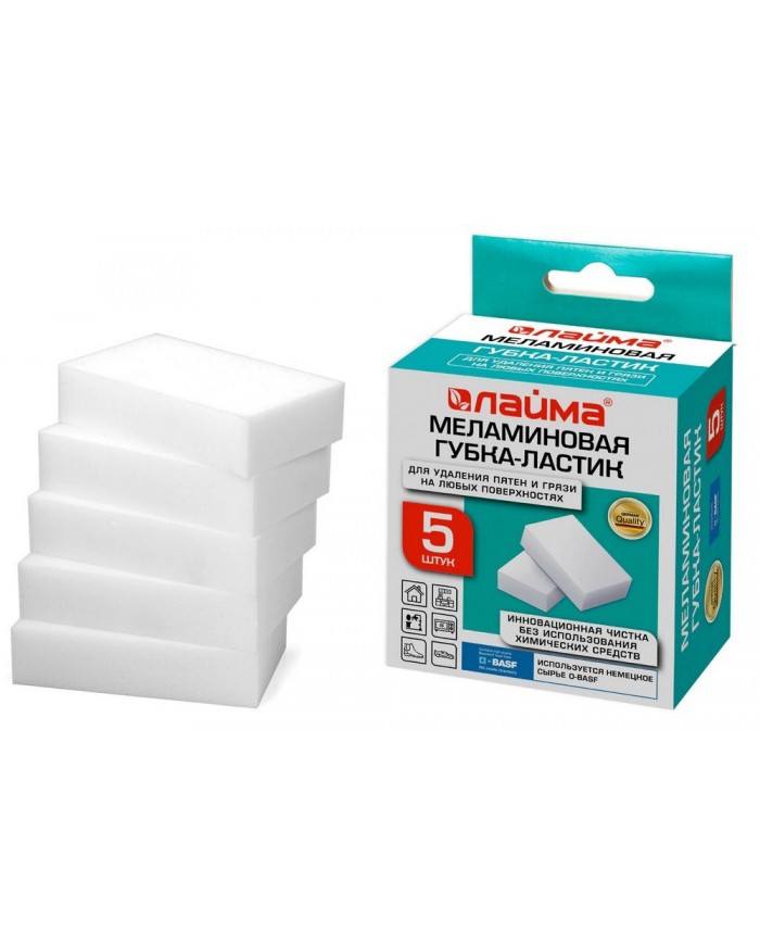 ГУБКА МОЖЕТ КРОШИТСЯ, ЕСЛИ ПОВЕРХНОСТЬ НЕ ГЛАДКАЯ, ЭТО НОРМАЛЬНО. Перед началом использования важно оценить визуально размер губки и площадь поверхности, которую Вы собираетесь отмывать. Если площадь загрязнения маленькая, то можно отрезать лишнюю часть при помощи ножниц или же острого ножа и не использовать губку целиком, т.к. как правило после использования отработанный кусочек ВЫБРАСЫВАЕТСЯ. Во время использования меламиновую губку требуется пропитать небольшим количеством воды, затем отжать не перекручивая и не перегибая, чтобы удалить все излишки влаги. ВАЖНО: при работе с губкой влажными должны быть и губка и обрабатываемая поверхность. Губка состоит из 100% вспененного МЕЛАМИНА (моющего вещества). Можно использовать как ластик, который удаляет застарелые загрязнения различного рода на кафеле, обуви, пластике, коже и других поверхностях. Другие моющие средства вместе с ней не применяются, меланиновая губка сама является моющим средством при взаимодействии с водой. Перед применением необходимо поместить меламиновую губку в емкость с холодной водой, аккуратно отжать между ладонями, чтобы меланин вступил в реакцию. Скручивать не желательно (может нарушится целостность губки). Рекомендуем пользоваться перчатками. Беречь от детей и домашних животных. Меламин — это полимерный материал, из которого делают множество вещей: клеи, лаки, пенопласты и, в том числе, меламиновые губки — это губки-ластики, которые используются в быту для очищения посуды и мебели от пятен различного происхождения. Как это часто бывает при появлении на рынке новых продуктов, возникает обеспокоенность по поводу безопасности меламина, но в отношении него было проведено множество исследований, которые говорят о том, что меламин не более токсичен, чем обычная кухонная соль. Меламиновая губка внешне напоминает кусок светлого поролона, но по текстуре и на ощупь это совершенно другой материал, твердость можно сравнить со стеклом или наждачной бумагой, но при контакте с водой губка становится мягкой и податливой. А всё дело в образовании пены. При образовании пены одна часть пор остается закрытой, а вторая — открывается. Та часть губки, которая остается открытой, обогащена множеством усиков, которые во время соответствующей работы придают свойства шершавости и цепкости. А вот закрытая часть губки имеет иные характеристики и свойства: жесткость и эластичность. ГУБКА МОЖЕТ КРОШИТСЯ, ЕСЛИ ПОВЕРХНОСТЬ НЕ ГЛАДКАЯ, ЭТО НОРМАЛЬНО. Перед началом использования важно оценить визуально размер губки площадь, которую Вы собираетесь отмывать, если кажется, что она по своим размерам слишком велика, то можно отрезать лишнюю часть при помощи ножниц или же острого ножа. Во время использования меламиновую губку требуется пропитать небольшим количеством воды, затем тщательно отжать, чтобы удалить все излишки влаги. Чистящее изделие способно самостоятельно справиться с различными загрязнениями, поэтому добавления жидких чистящих средств при этом можно не допускать. Очень опасно наносить на поверхность меламиновой губки любые химические реагенты, так как это спровоцирует появление негативной химической реакции. Во время использования рекомендовано чистить поверхности предметов от загрязнений кончиком меламиновой губки. Чистящее изделие имеет свойство изнаш