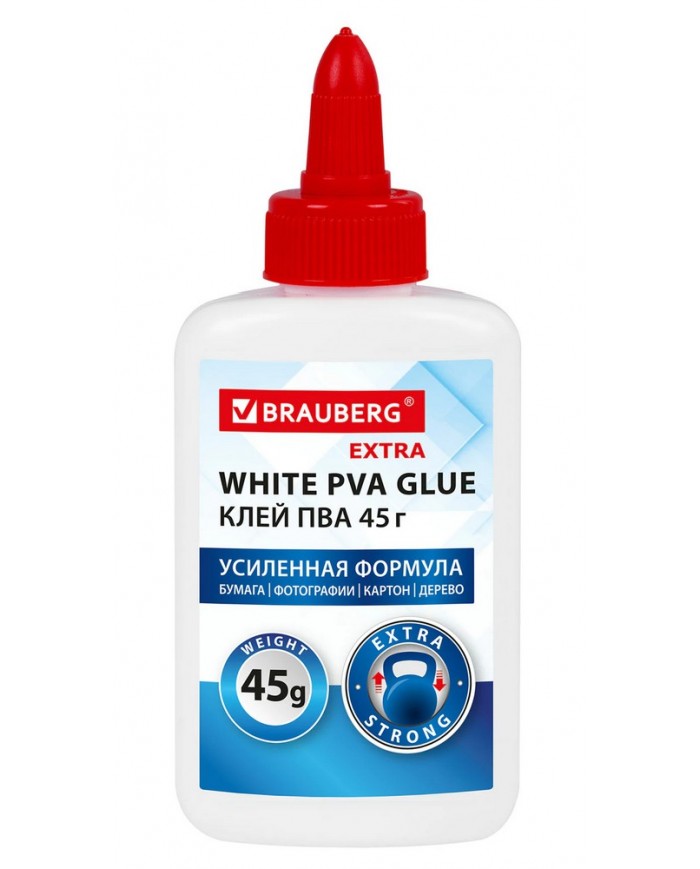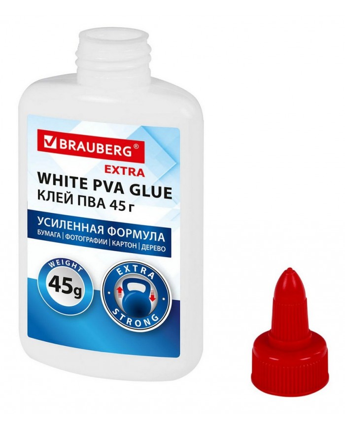 Клей ПВА, усиленный, BRAUBERG Extra (бумага, фотографии, картон, дерево), 45 г,