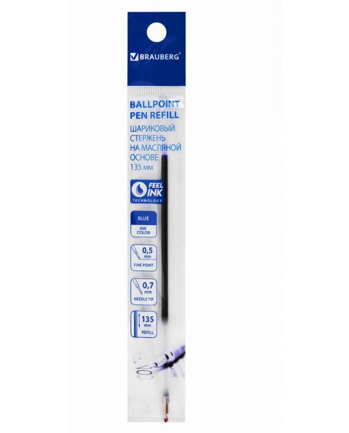Стержень шариковый масляный BRAUBERG 135 мм, СИНИЙ, игольчатый узел 0,7 мм, линия письма 0,5 мм