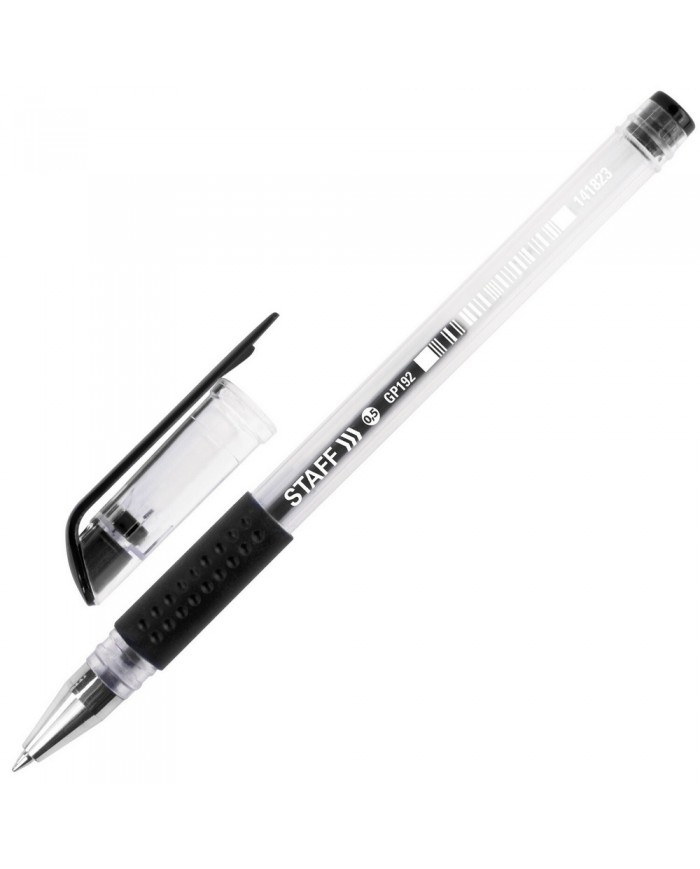Ручка гелевая с грипом STAFF "EVERYDAY" GP-192, ЧЕРНАЯ, корпус прозрачный, узел 0,5 мм, линия письма