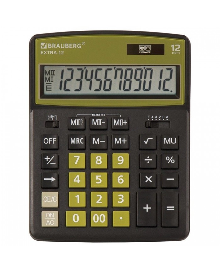 Калькулятор настольный BRAUBERG EXTRA-12-BKOL (206x155 мм), 12 разрядов, двойное питание, ЧЕРНО-ОЛИВ