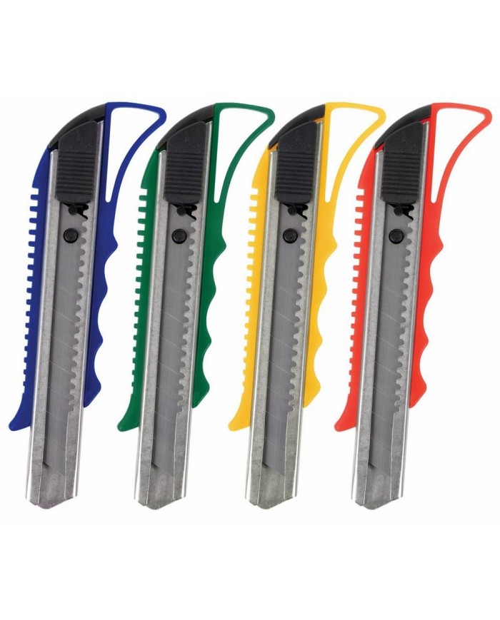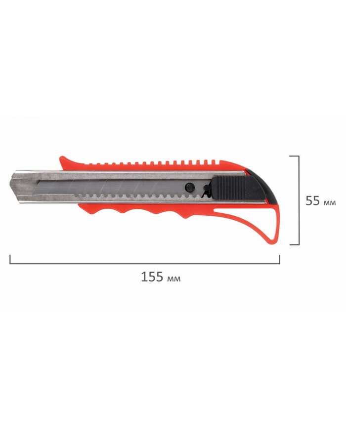 Благодаря своей обтекаемой форме нож удобно держать в руке. Пластиковый корпус гарантирует безопасность применения. Автофиксатор позволяет закрепить лезвие в нужном положении с помощью защелки. Для того, чтобы хранить и переносить инструмент было проще, в корпусе имеется небольшое отверстие. Нож усиленный с металлическими направляющими, которые надежно удерживают лезвие шириной 18 мм и позволяют выдерживать большую нагрузку. Чтобы восстановить функциональность инструмента из-за затупившегося лезвия, необходимо обломать его по наклонной метке на поверхности лезвия. При этом его нужно выдвинуть только на одно деление. В щель на снятой крышке необходимо поместить затупившийся край лезвия ножа. Инструмент нужно держать в руках таким образом, чтобы лезвие было обращено вверх той стороной, где нет разделительных меток. После этого необходимо согнуть лезвие по линии излома ОТ СЕБЯ. При этом затупившийся обломок остаётся в щели крышки, а инструмент вновь становится пригодным к полноценной работе. Поставляется в нескольких вариантах цвета (без возможности выбора).
