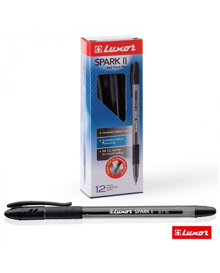Ручка шариковая Luxor "Spark II" черная, 0,7мм, грип, ИНДИЯ