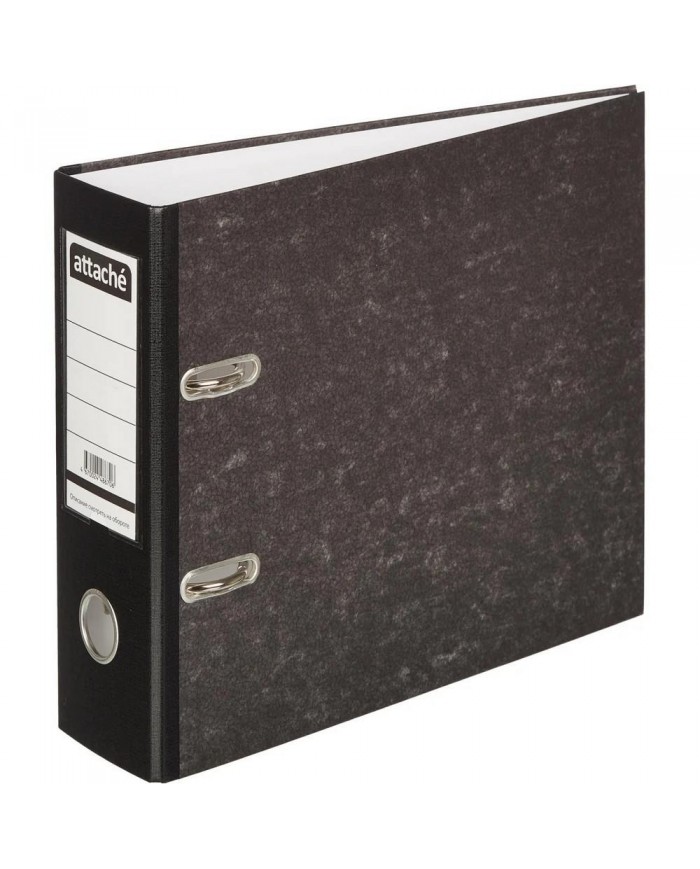 Папка-регистратор Attache горизонтальная с арочным механизмом изготовлена из плотного картона. С внешней стороны оклеена прочной бумагой, дизайн которой имитирует мрамор. Формат А5, ориентация — горизонтальная. Арочный механизм выполнен из особо прочной стали, произведен в Чехии. Специальные прорези на крышке удерживают папку закрытой даже при большом количестве документов. Корешок — бумвинил, ширина — 75 мм. Вместимость — 480 листов. Цвет — черный. Папки-регистраторы используются в офисах, государственных учреждениях или дома для удобного хранения и организации большого количества документов. Они помогут сохранить порядок и обеспечат удобный доступ к нужной информации.
