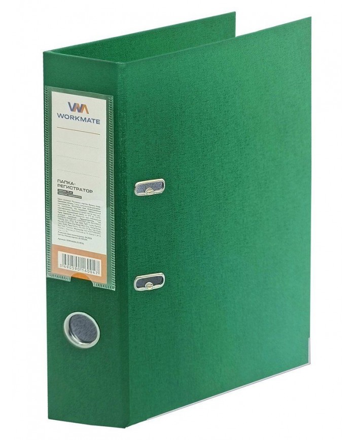 Папка-регистратор Workmate 75 мм, ПП двусторонний, зеленая, с металлической окантовкой, в разборе