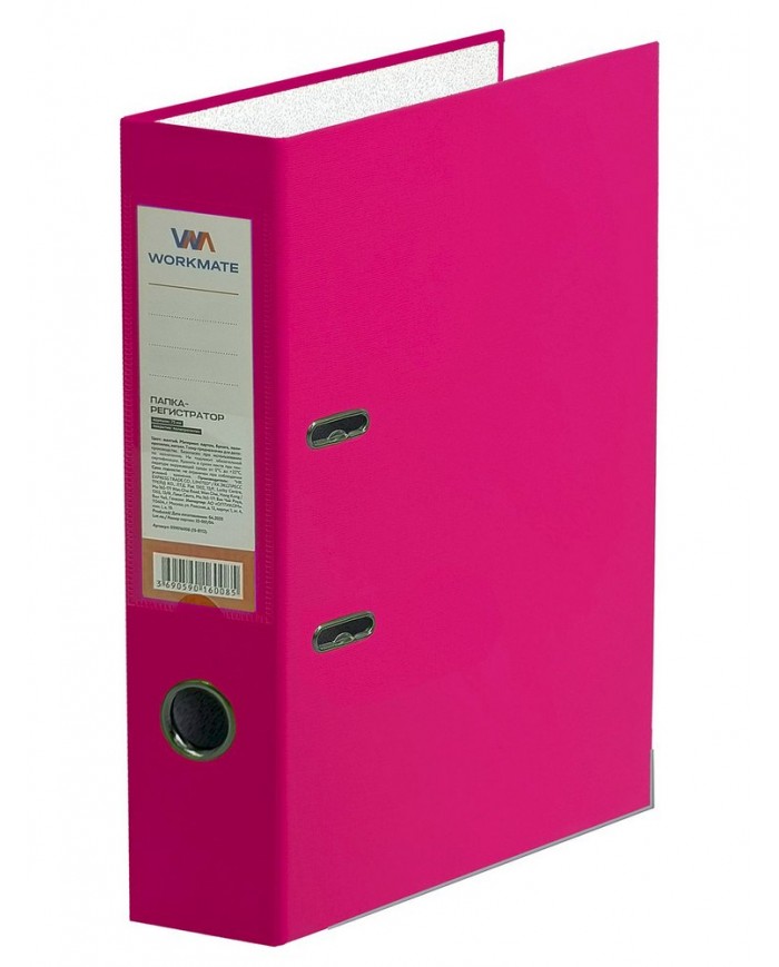 Папка-регистратор Workmate 75 мм, ПП, ярко-розовая, наварной карман с этикеткой, с металлической ока