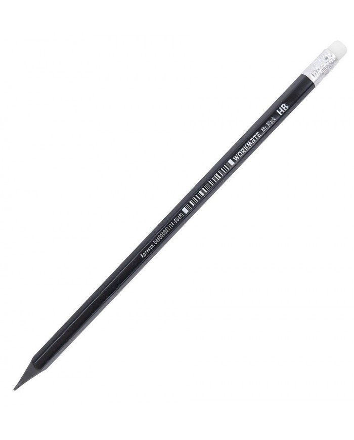 Карандаш чернографитный пластиковый с ластиком Mr.Black HB, черный корпус, заточенный Workmate