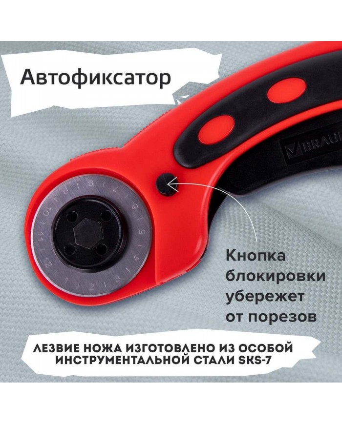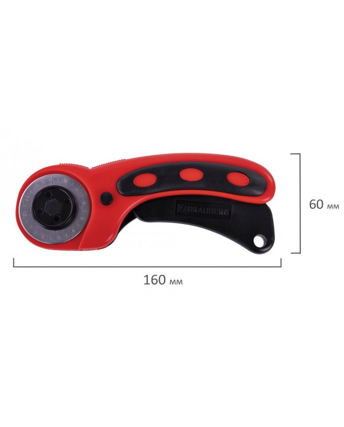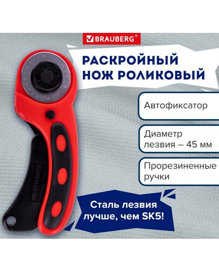 Нож раскройный роликовый 45 мм BRAUBERG PROFESSIONAL, круглое лезвие, резиновые вставки,
