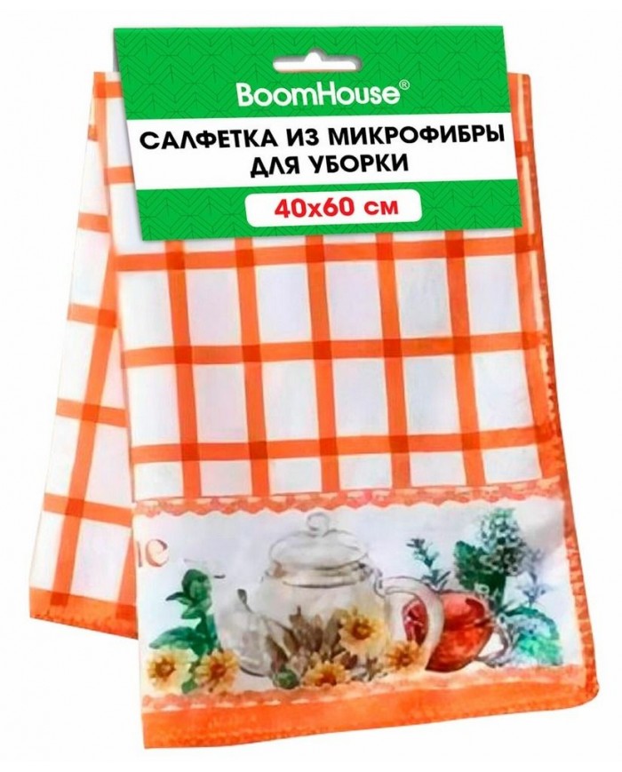 Салфетка из МИКРОФИБРЫ универсальная, 40х60 см, оранжевая клетка, орнамент, 240 г/м2, BOOMHOUSE (БУМ