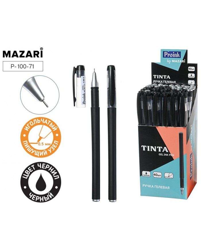 Ручка гелевая TINTA, ЧЕРНАЯ, игольч.пиш.узел 0.5 мм, цветной пластик.корпус, стержень 130 мм