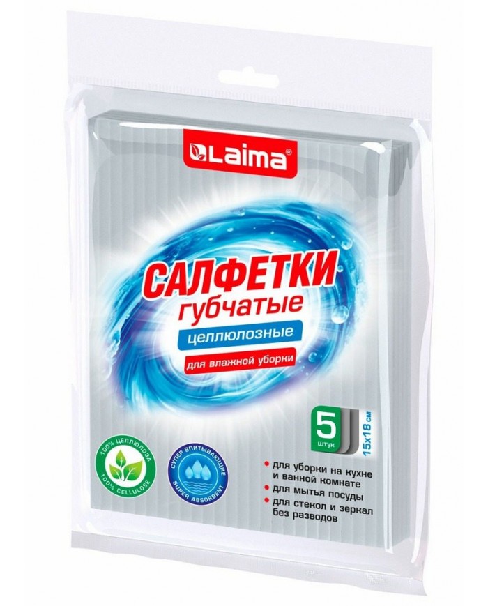Комплект губчатых салфеток LAIMA - 5 шт. Размер салфетки - 15 х 18 см. Цвета в одном комплекте - серый. Супер впитывающие салфетки из 100% целлюлозы используются для уборки на кухне и в ванной комнате, для мытья посуды, стекол и зеркал, для протирания любых поверхностей и даже для ухода за автомобилем. Салфетки не ломаются и не крошатся, сохраняют свою форму после многократного использования, что делает их идеальными для любых задач. Впитывают большой объем жидкости.