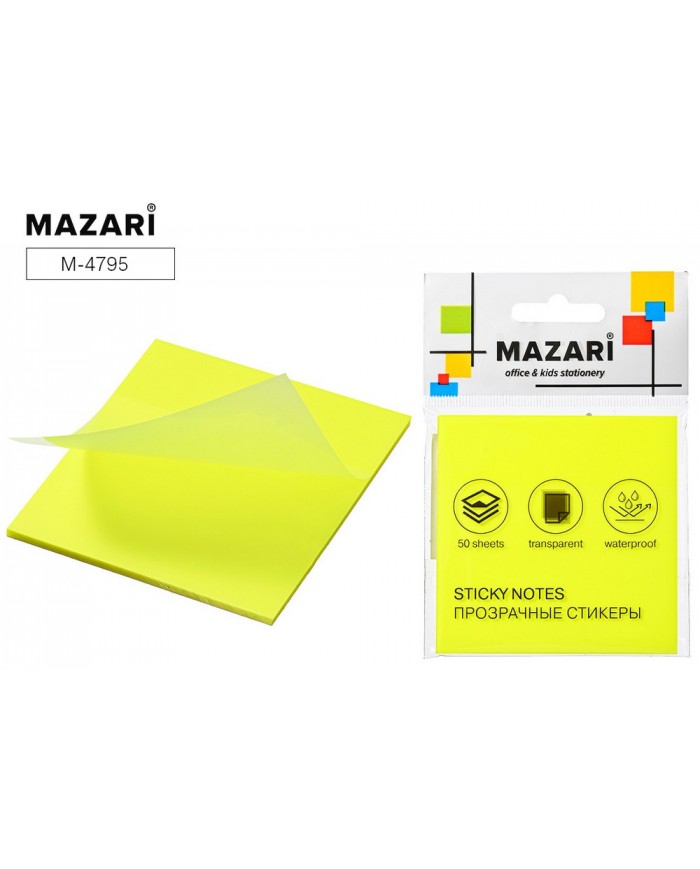 Бумага для заметок с липким слоем ПРОЗРАЧНЫЙ ЖЕЛТЫЙ, 76x76мм, 50 листов, пластик