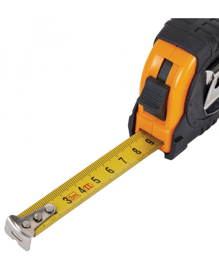 Рулетка ГРАНДМАСТЕР проста в обращении, обладает повышенной износостойкостью и долгим сроком службы. Корпус рулетки из прочного пластика с прорезиненным покрытием обеспечит защиту инструмента от повреждений при случайном падении. Измерительная лента с метрической шкалой II класса точности изготовлена из прочной марганцевой стали, устойчивой к заломам, и оснащена зацепом для удобства измерений. Рулетка оснащена ремешком для ношения на запястье, а также металлической клипсой для крепления на поясе. Эргономичный дизайн с вертикальным фиксатором измерительной ленты позволит использовать рулетку даже одной рукой. Материал корпуса: ABS-пластик с покрытием. Цвет корпуса: оранжевый с чёрным покрытием. Материал измерительной ленты: 45 марганцевая сталь. Размеры измерительной ленты: длина 3 метра, ширина 16 миллиметров. Система измерения: метрическая. Цвет ленты: жёлтый. Фиксатор: вертикальный. Упаковка: бумажная карта с европодвесом.
