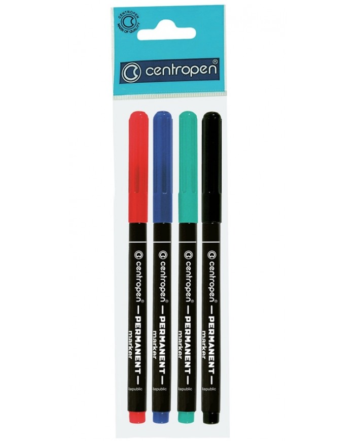 Набор перманентных маркеров Centropen "2536" 04цв., пулевидный, 1,0мм, пакет, европодвес