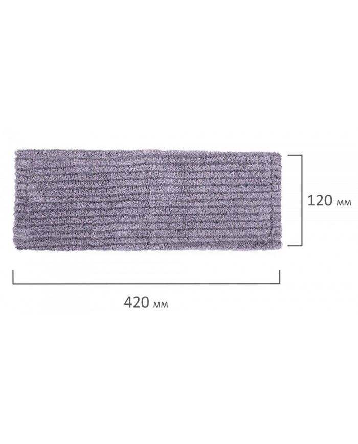 Моп имеет форму плоского прямоугольника. Такая форма и чистящая поверхность из ворса длиной 0,8 см позволяют удобно собрать грязь по углам и охватить большую площадь убираемой поверхности. Это сокращает временные затраты на уборку больших площадей. Насадка устойчива к износу, что обеспечивает долгий срок службы. Выполнена из микрофибры, имеет размер 42х12 см. Максимальный объем впитывания - 200 мл. Используется в комплекте со шваброй, крепится к держателю с помощью карманов.