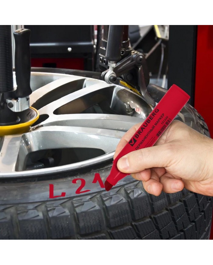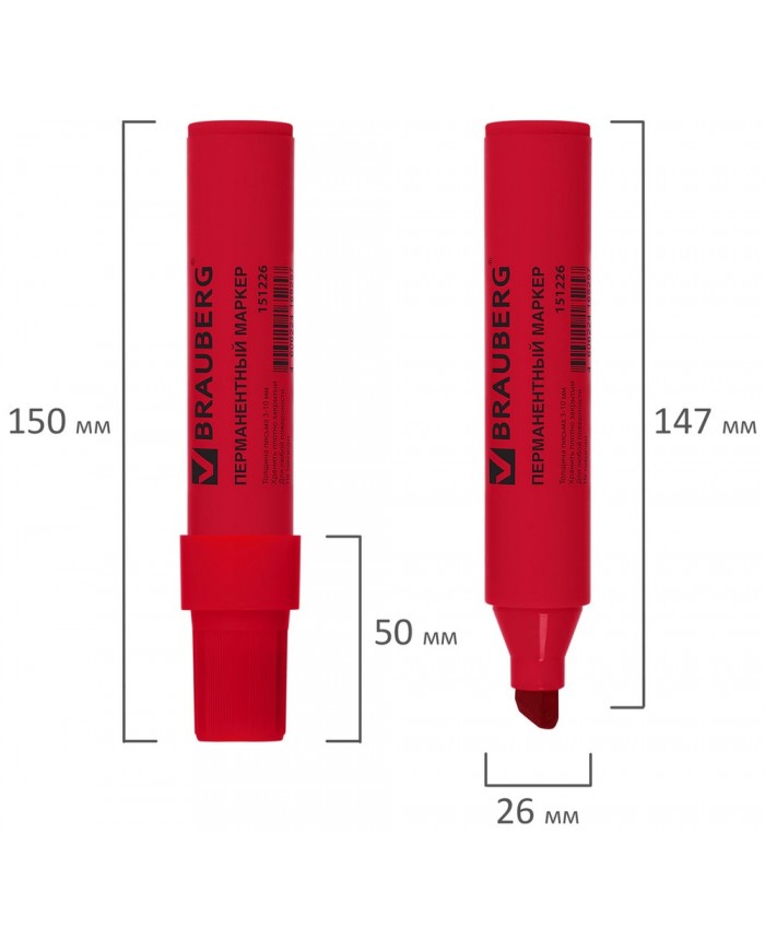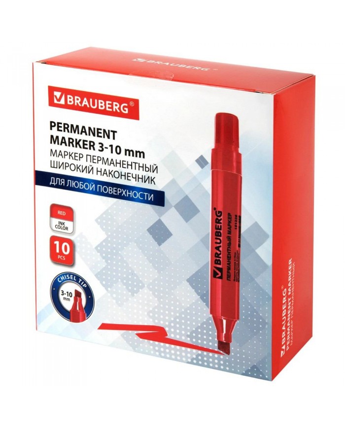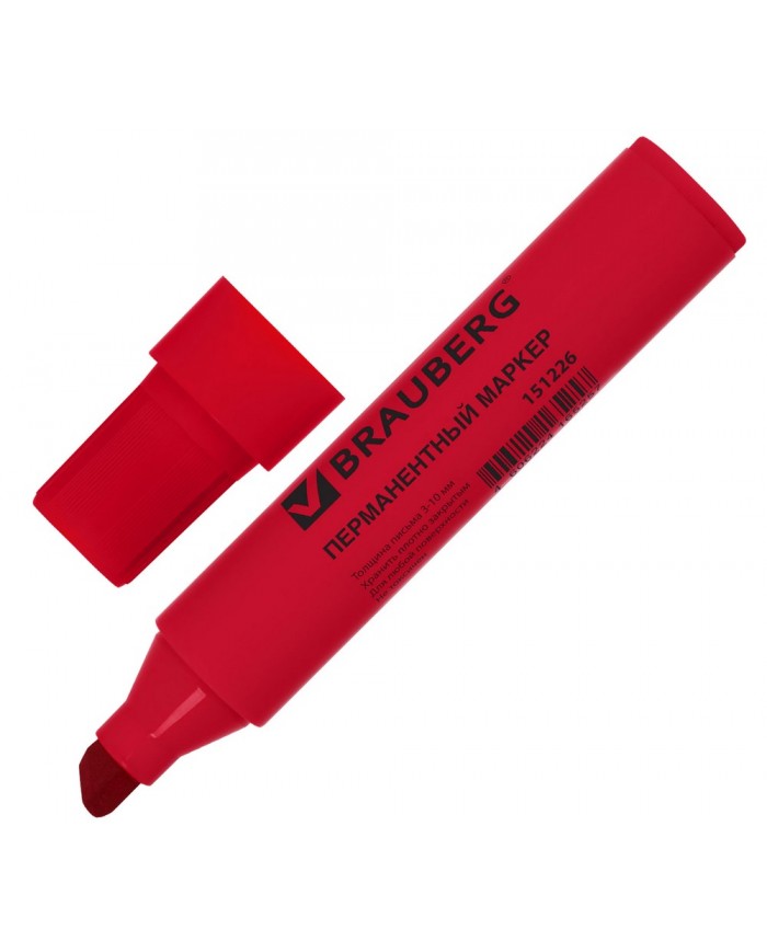 Маркер перманентный BRAUBERG "JUMBO", КРАСНЫЙ, ШИРОКАЯ ЛИНИЯ ПИСЬМА, скошенный наконечник, 3-10 мм