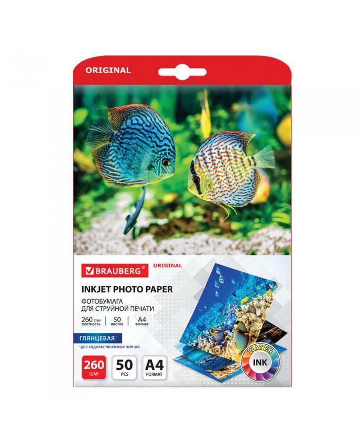 Фотобумага глянцевая, А4, 260 г/м2, односторонняя, 50 листов, BRAUBERG ORIGINAL,