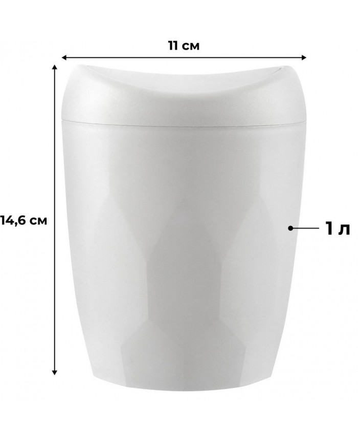 Контейнер для мусора Keeplex Light 1 л пластик с крышкой белый (14.6?11?11 см)Контейнер для мусора Keeplex Light 1 л — практичное и стильное решение для дома. Миниатюрный контейнер разработан для поддержания чистоты в ванной комнате, на рабочем столе и на кухне. Поворотная крышка-маятник легко открывается простым нажатием руки. Для удобства извлечения накопившегося мусора верхняя часть контейнера сделана съёмной. Сделан из прочного, лёгкого пластика. Матовое soft-touch покрытие создаёт приятные тактильные и визуальные эффекты. Входит в коллекцию бренда Keeplex «Light», что позволяет подобрать аксессуары для ванной комнаты в едином стиле. Оригинальный ромбовидный узор добавляет элегантности и современности в интерьер ванной комнаты. Объём — 1 л.
