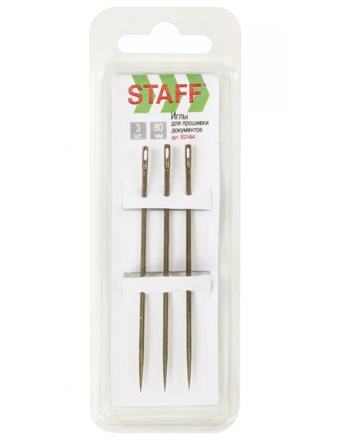Иглы для прошивки документов (цыганские), КОМПЛЕКТ 3 шт., длина 80 мм, диаметр 1,8 мм, блистер, STAF