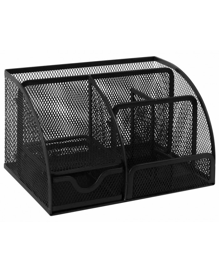 Изготовлена из металлической сетки. Имеет размеры 125х220х140 мм. Выполнена в черном цвете. Состоит из 7 секций, которые позволяют хранить и сортировать самые разные канцелярские принадлежности: от блоков для записей и кнопок – до ручек и карандашей. Мягкие подушечки на дне предотвращают скольжение и порчу мебели. Поставляется без канцелярского наполнения.