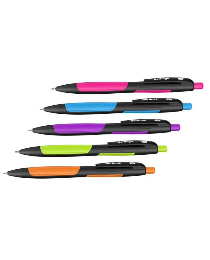 Эффектная шариковая автоматическая ручка с клипом одноименной суперуспешной кросс-продуктовой серии Color Zone в новой эксклюзивной форме, разработанной компанией «Берлинго». Прорезиненное покрытие черного с яркими неоновыми вставками корпуса и утолщение в зоне захвата ручки обеспечивают высокий уровень комфорта при ее использовании. Уникальная запатентованная технология Smart Ink, обеспечивающая лёгкое и приятное письмо за счёт использования чернил пониженной вязкости, инновационных материалов шарика, пишущего узла и его специальной конструкции, усовершенствована AFIT наконечником (от англ. "Anti-Fiber Intake" – препятствующий попаданию микро-частиц бумаги). Инновационные компоненты, используемые для изготовления шарика пишущего узла (карбид вольфрама), обеспечивают долговечность и стабильность качества письма. Диаметр пишущего узла составляет 0,7 мм, толщина линии письма – 0,5 мм, а длина письма – 600 м.