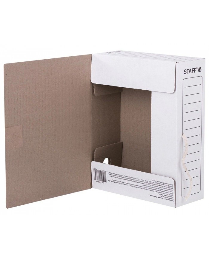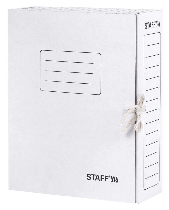 Папка архивная с завязками А4 (325х250 мм), 100 мм, до 900 листов, микрогофрокартон, БЕЛАЯ, STAFF