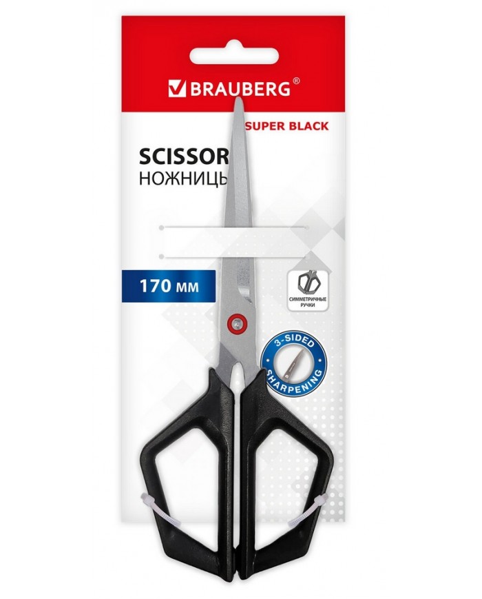 Ножницы BRAUBERG "Super black" 170 мм, черные, 3-сторонняя заточка, ручки из ABS-пластика,