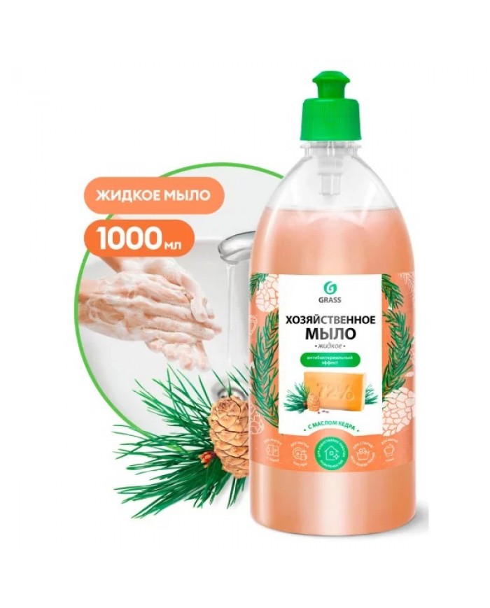 Мыло жидкое хозяйственное позволяет содержать дом в идеальной чистоте без вреда для здоровья вашей семьи и окружающей среде. Оно отлично справляется с любыми жировыми загрязнениями и благодаря входящему в состав натуральному маслу кедра, обладает антибактериальными свойствами. Подходит для мытья посуды, кухонного оборудования, рабочих водостойких поверхностей (деревянных, керамических, пластмассовых и пр.), сантехники, полов и стен помещений, стекол и стирки любых видов тканей. / Способ применения: для экономичного мытья полов, стен, кухонного оборудования и любых других рабочих поверхностей необходимо 30 мл средства растворить на 5 литров воды. Для влажной уборки сильно загрязненных поверхностей: растворите 50-75 мл средства на 5 литров воды, протрите загрязненную поверхность. Для мытья посуды: нанесите небольшое количество средства на губку, намыльте посуду, хорошо смойте водой. Для ручной стирки белья: растворить 150 мл средства в тазике с водой, постирать и прополоскать водой.