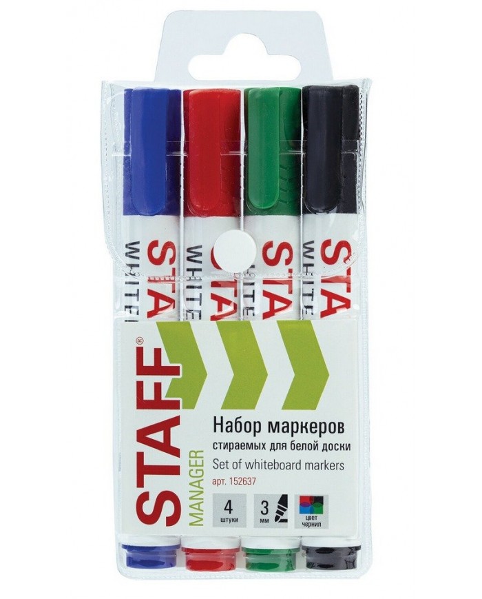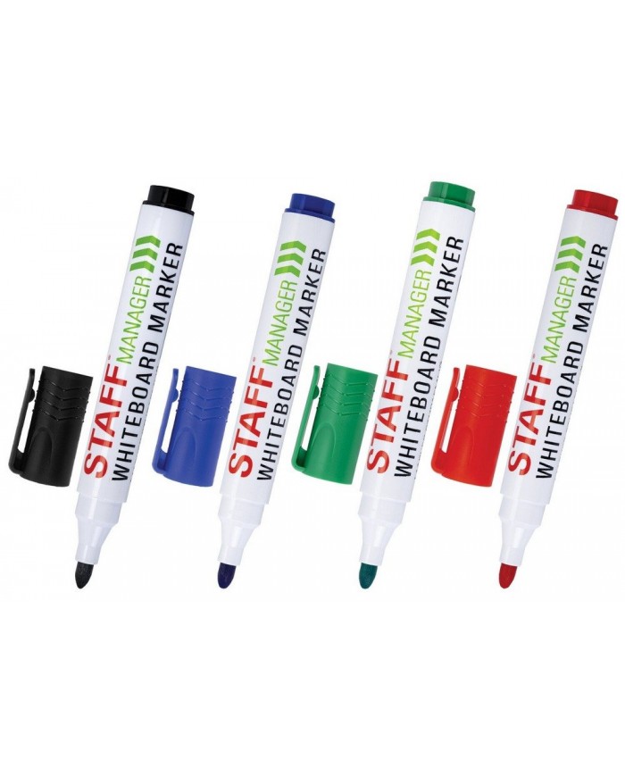 Маркеры стираемые для белой доски, НАБОР 4 ЦВЕТА, STAFF "MANAGER" WBM-300, 3 мм, с клипом,