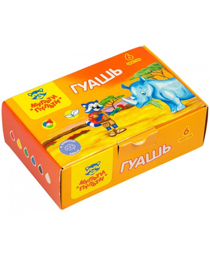 Гуашь Мульти-Пульти "Енот в Африке", 06 цветов, 20мл, картон