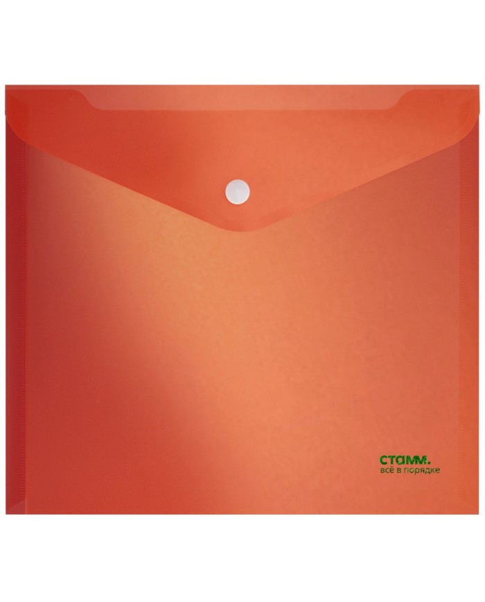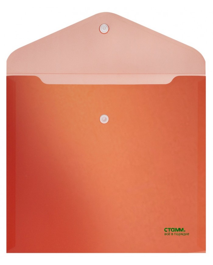 Папка-конверт на кнопке СТАММ "Сияние" А5+, 180мкм, пластик, непрозрачная, оранжевый