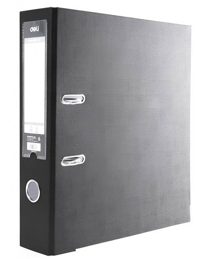 Папка регистратор 75мм, А4, ПВХ, "Deli" черная с мет. уголком, разборная, 1,8мм