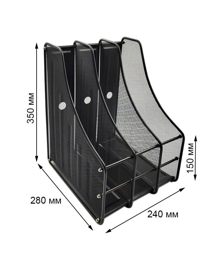 Лоток вертикальный тройной металлический, черный, 350*280*240мм GROSS