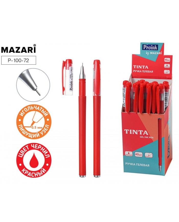 Ручка гелевая TINTA, КРАСНАЯ, игольч.пишущ.узел 0.5 мм, цветной пластик.корпус, стержень 130мм