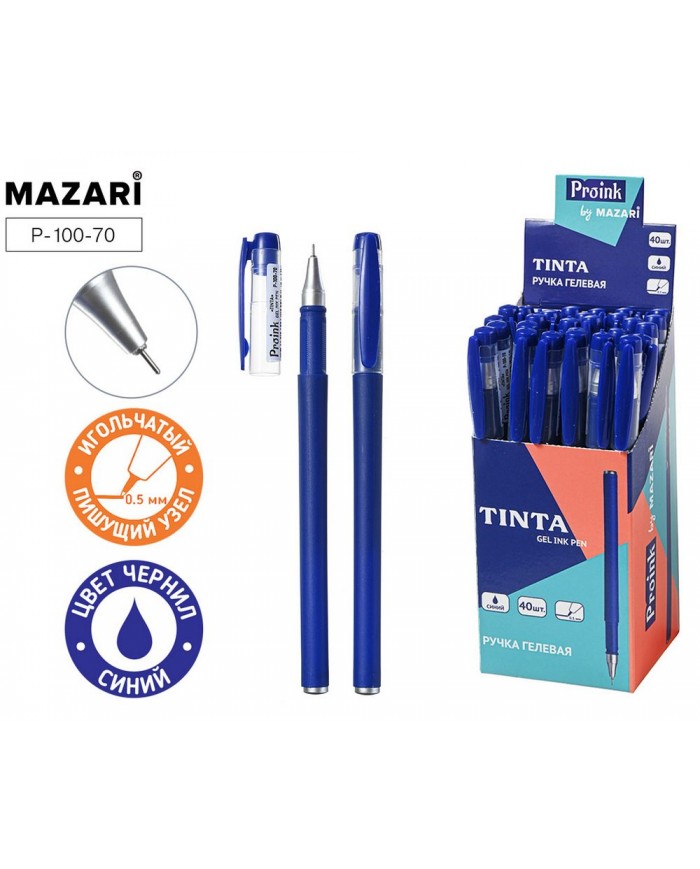 Ручка гелевая TINTA, СИНЯЯ, игольчатый пишущий узел 0.5 мм, цветной пластиковый корпус, стерж. 130мм