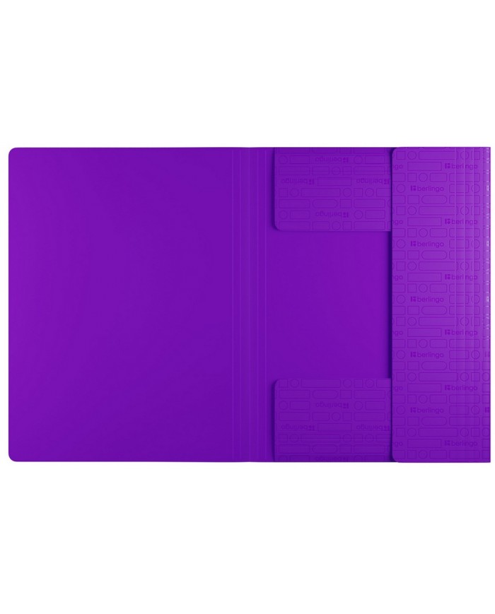 Папка изготовлена из высококачественного полипропилена с матовой текстурой поверхности с фирменным тиснением Berlingo, на которой не видно отпечатков пальцев и мелких царапин. Толщина обложки 600 мкм. Надёжные застёжки-резинки помогают избежать повреждения документов и легко открываются. Упакована в индивидуальный прозрачный пакет по форме.