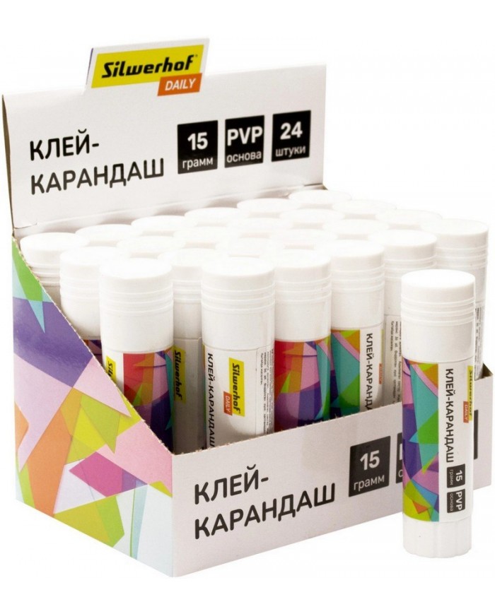 Клей-карандаш 15г ПВП Silwerhof Daily , дисплей картонный