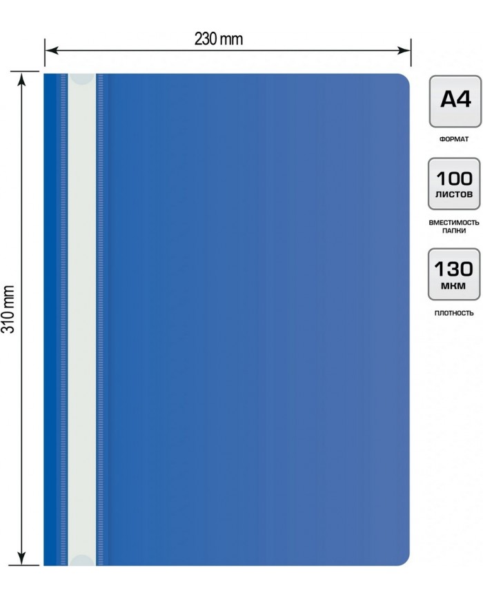 Скоросшиватель пластик.с прозрачным верх.листом A4 синий 110/130мкм Silwerhof Eco SE-PSE20/BLU