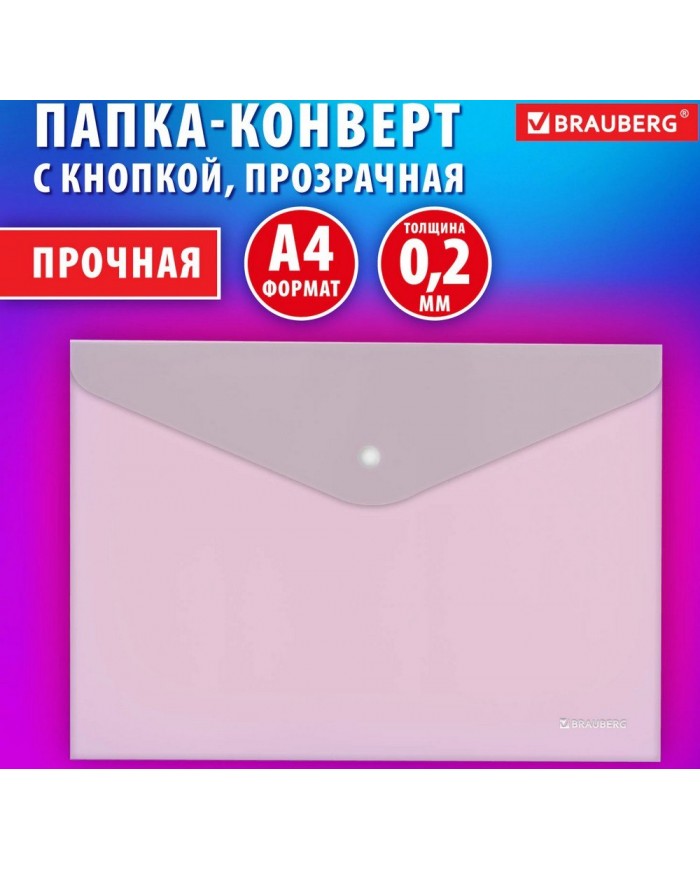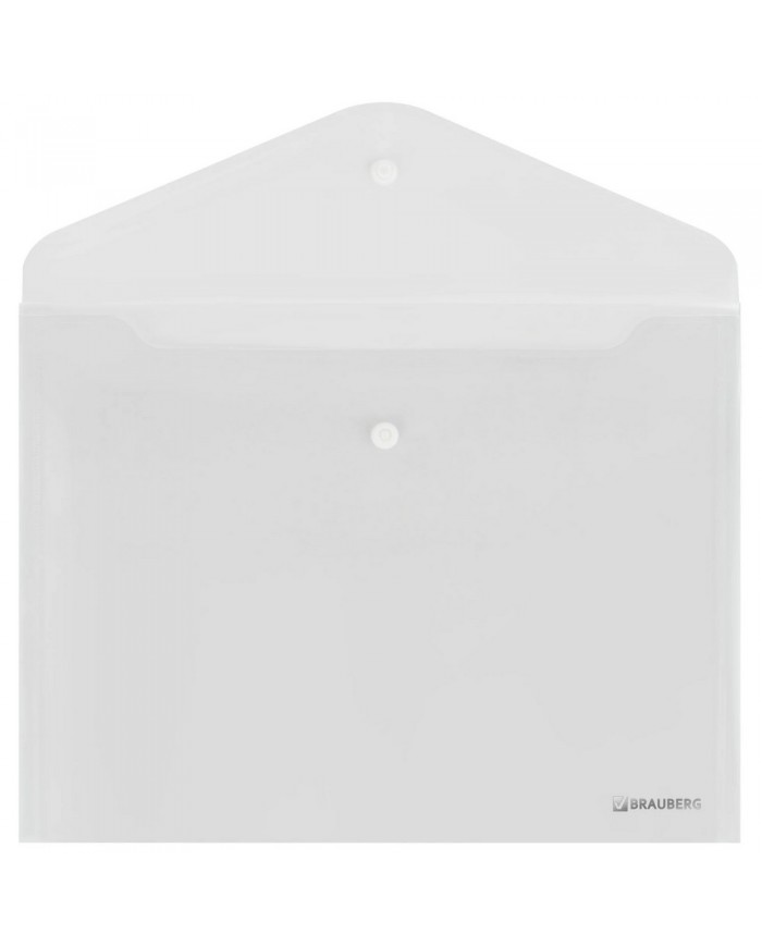 Папка-конверт с кнопкой BRAUBERG "SUPER", А4, прозрачная, ПРОЧНАЯ 0,2 мм,