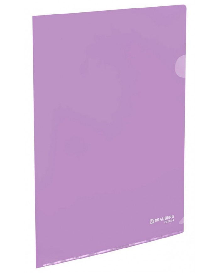 Папка-уголок жесткая, непрозрачная, А4, цвет лиловый, 0,15 мм, BRAUBERG PASTEL,