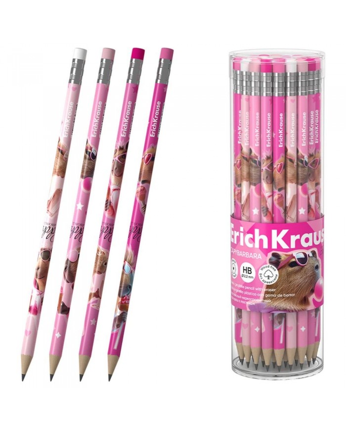 Карандаш чернографитный пластиковый с ластиком ERICH KRAUSE "CapyBarbara", НВ,