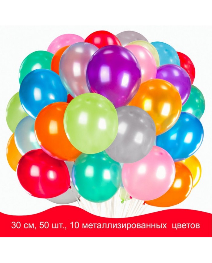 Шары воздушные ЗОЛОТАЯ СКАЗКА, 12" (30 см), КОМПЛЕКТ 50 штук, металлик, ассорти 10 цветов, пакет,