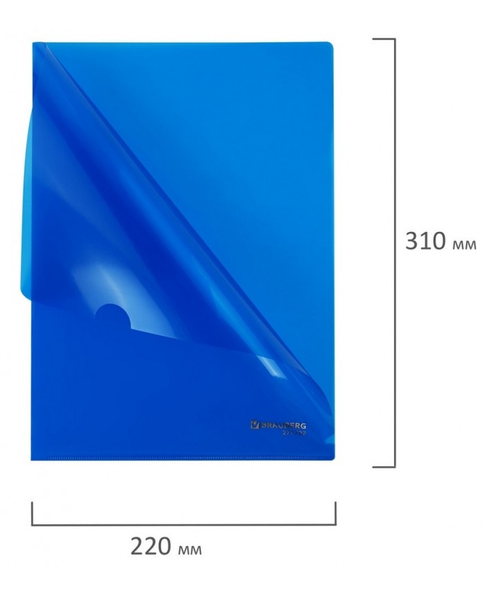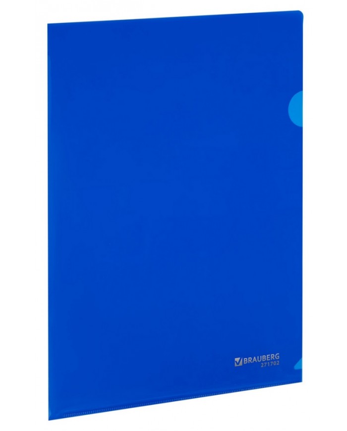 Папка-уголок А4, синяя, 0,15 мм, прозрачная BRAUBERG EXTRA