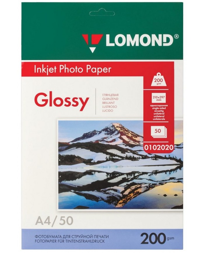 Фотобумага глянцевая, А4, 200 г/м2, односторонняя, 50 листов, LOMOND,