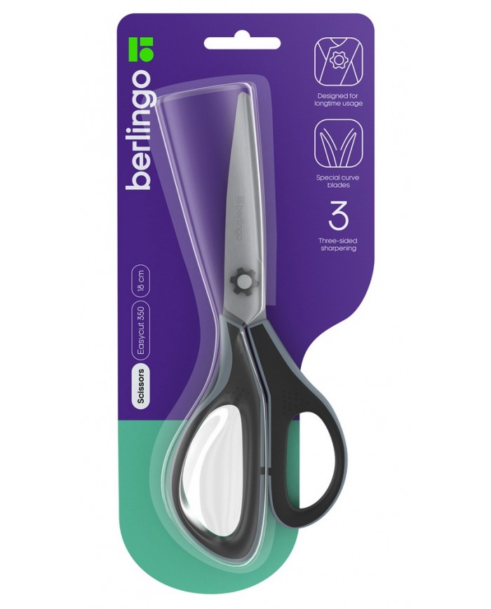 Ножницы Berlingo "Easycut 350", 18см, серые, эргономичные ручки, мягкие вставки, европодвес