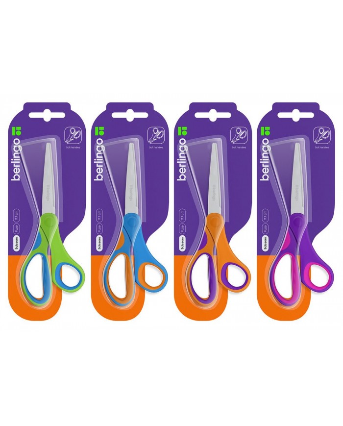 Ножницы Berlingo "Fuze" 17,7см, эргономичные ручки, ассорти, европодвес
