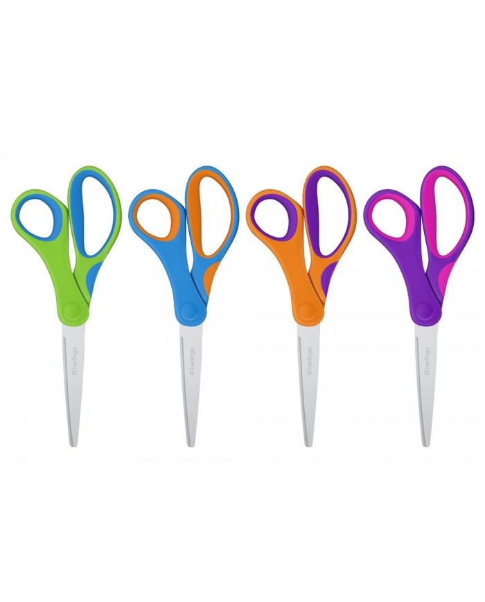 Ножницы Berlingo серии Fuze подходят для работы с бумагой и картоном. Лезвия изготовлены из качественной нержавеющей стали. Длина: 177 мм. Ассорти ярких цветов ручек: синий, фиолетовый, зеленый, оранжевый, розовый. Удобные симметричные пластиковые ручки имеют эргономичную форму. Комфорт в использовании добавляет новый усовершенствованный соединительный винт. Упаковка – удобный для продажи блистер с европодвесом, позволяющий оценить характеристики ножниц, не нарушая упаковку.