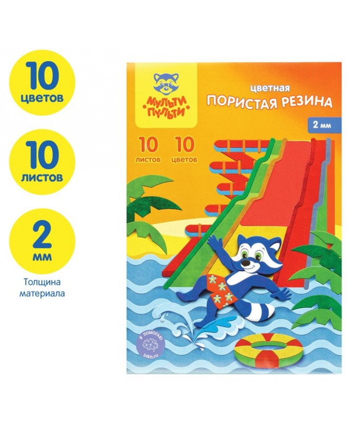 Цветная пористая резина (пенка EVA) Мульти-Пульти, А4, 10л., 10цв., 2мм, "Приключения Енота"